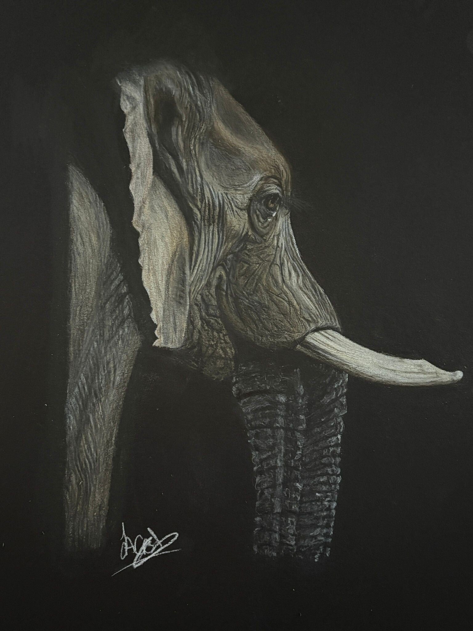 Bring the quiet strength of the wild into your home with this fine art print of Dark Elephant. This high-quality reproduction captures every intricate line and tonal nuance of the original drawing, from the textured folds of the skin to the thoughtful gaze of the elephant’s eye.
