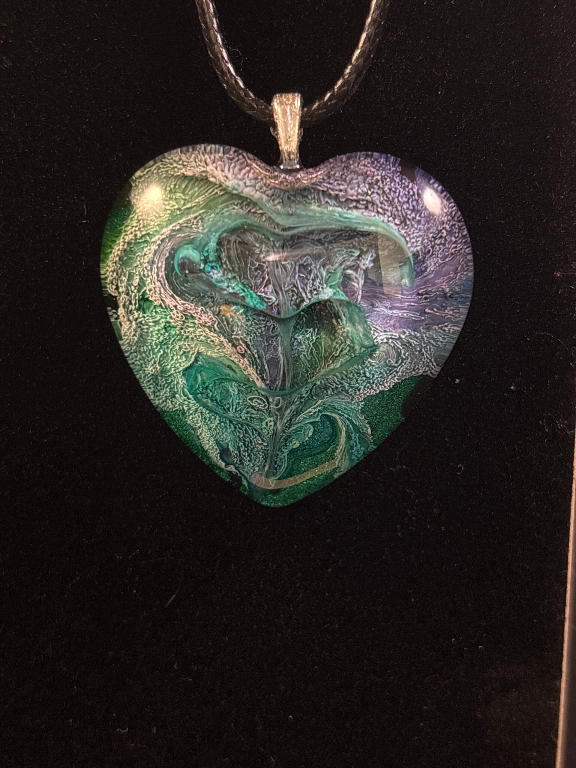 This handcrafted resin pendant contains real botanical elements, set within soft flowing colour to create a natural and meaningful composition.